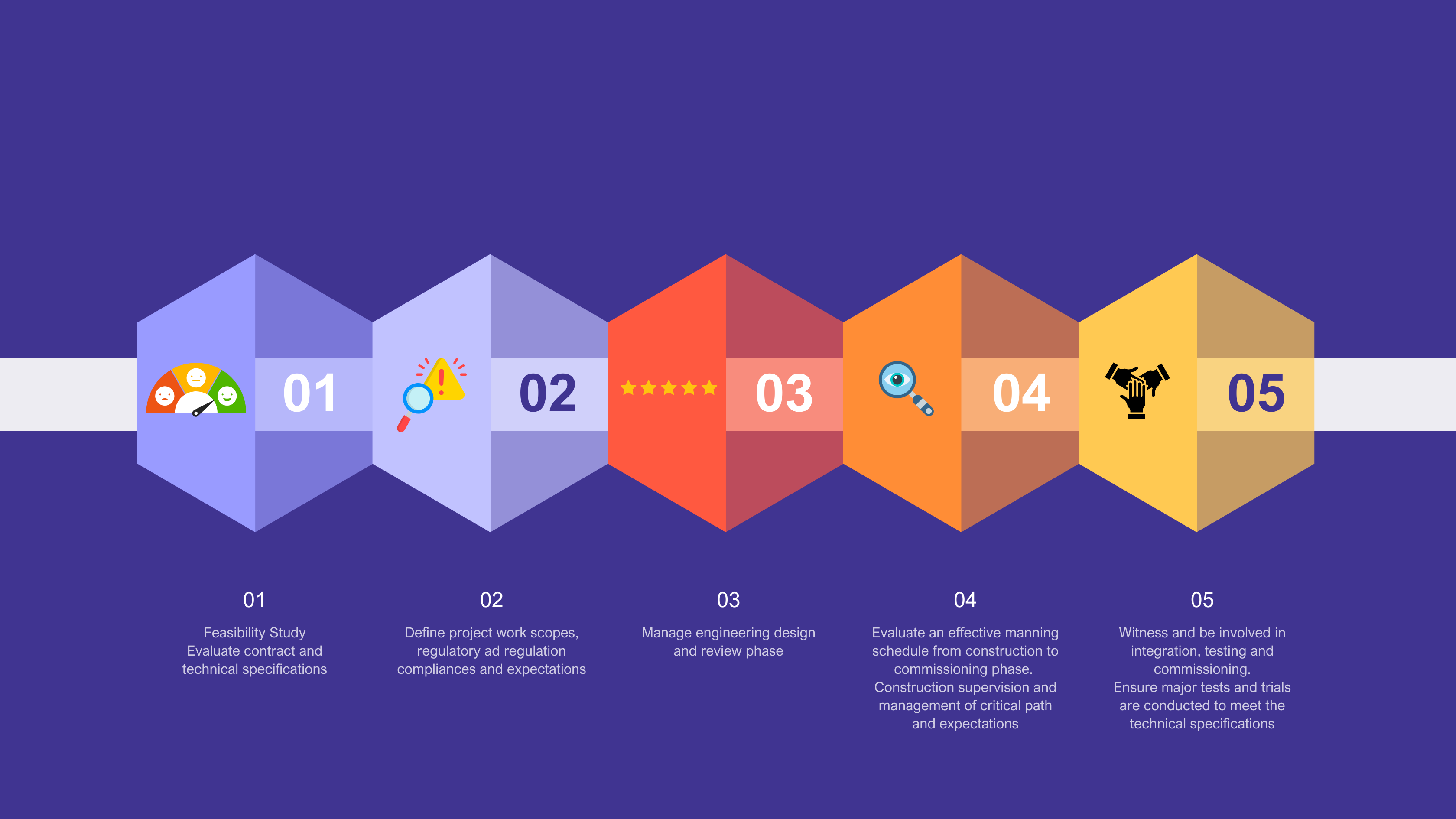 POG is a specialist in managing projects in the oil and gas and marine sectors. Our one stop service covers full cycle of a project from project financing, project feasibility study, technical specification contract review and negotiation, detailed engineering, construction supervision, installation, commissioning and operation. Our specialized multi-discipline teams who are recognized in the industry for their experience are competent to act on behalf of our Clients in the various roles, services and projects: