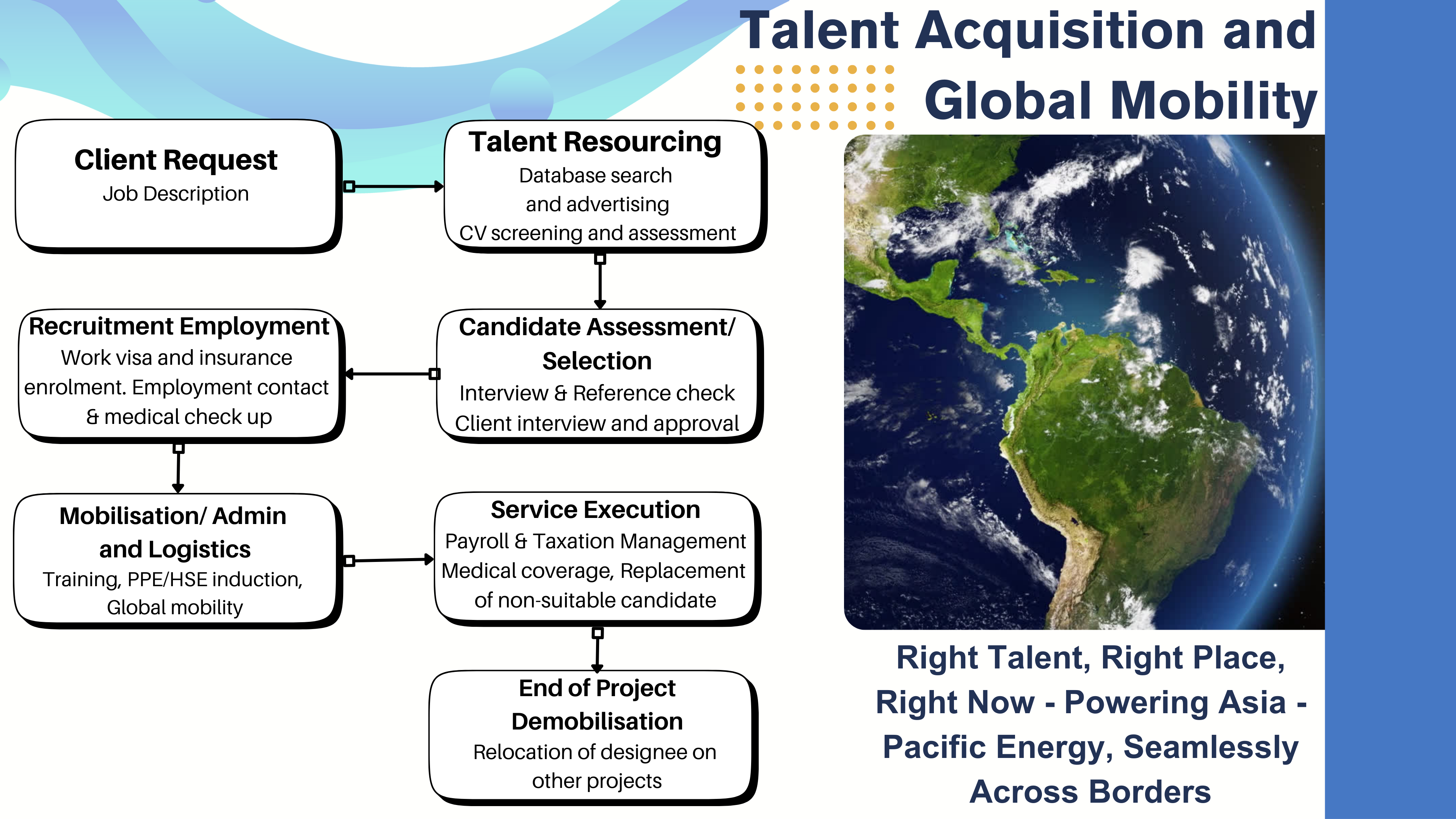 POG is a specialist in delivering a fully integrated Talent Acquisition (expat and local) solution in the Energy, Engineering and Infrastructure industries. We aspire to be the one-point contact for our Clients and at the same time delivering our services with high commitment and emphasis on QHSE.For the smooth delivery of a project, it is critical for any organization to clearly identify, recruit and manage a productive work force. At POG, our talent acquisition and mobility team have the ability to execute this efficiently for our Clients. Our in-house CRM which boosts a database of 60,000 profiles of various nationalities, skillsets and experiences enables the team to collate and match the end users’ expectations and requirements at the shortest time.